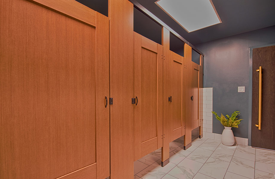 Más allá del rendimiento, Ironwood es conocido por su personalización audaz. Su oferta abarca estilos de puertas desde rejillas y paneles capturados hasta incrustaciones intrincadas, grabados y formas únicas. Al combinar esta flexibilidad de diseño con las amplias posibilidades de los productos de la marca Formica®, Ironwood demuestra cómo las particiones de baño pueden reflejar tanto individualidad como sofisticación.