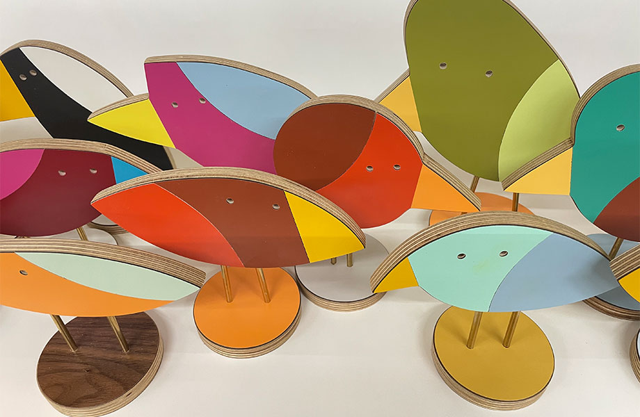 Con sede en Seattle, Walking Fingers Record Boxes es creación del artista Zach Urban, donde el laminado sobrante se transforma en cajas de almacenamiento de discos, piezas escultóricas y composiciones visuales que celebran el color, el diseño y la longevidad del material.